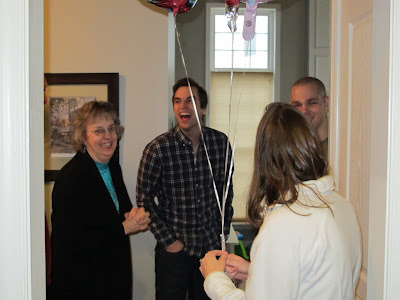 Little did I know where Eric was going... He had invited my whole family to come in from out of town (they all live in OH/KY) and was going to their hideout at Adam and Lyndsay's house! They had gotten there early afternoon, and were waiting for me to get done working to surprise me! I was shocked to see my parent's show up at the door, and then thinking it couldn't get better, opened the door and my 2 favorite brothers were there! I honestly didn't think there would be anymore surprises! This is the first birthday I have spent with my family since we all lived at home (I don't want to tell you how many years ago that might have been!)